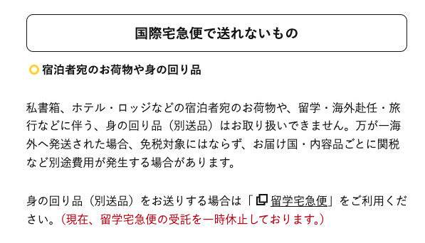 今回の様なケースには「留学宅急便」というサービスが別にある。